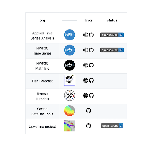 This cohort followed one we led this spring for the Northwest Fisheries Science Center (NWFSC) and was co-led by Dr. Eli Holmes, who had participated and has a long history of open science leadership and teaching at NOAA and beyond. This post focuses on what the cohort setup and participants achieved. It is co-authored with Eli, Eric Ward, and Hélène Scalliet from NOAA NWFSC, who coordinated the cohort, and Corey Clatterbuck from California Waterboards, who assisted. This opportunity is funded by participating science centers and coordinated by NOAA Northwest Fisheries Science Center (NWFSC). See openscapes.org/champions for more background on the Champions program.