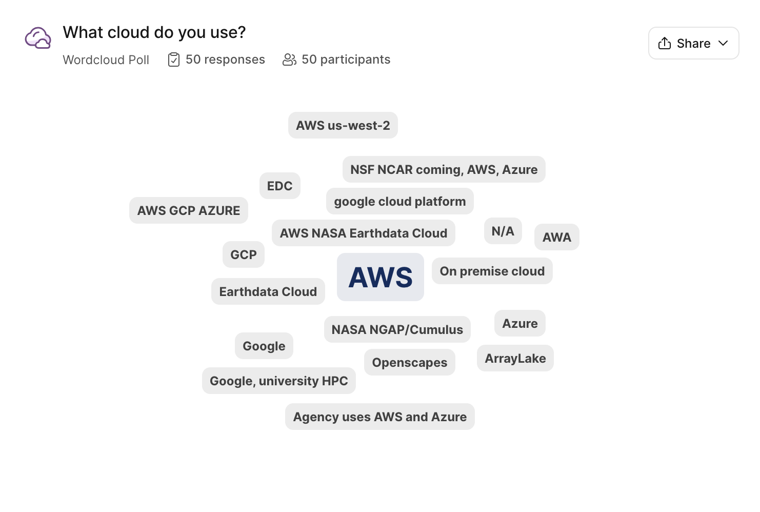 First, Alexis Hunzinger (GES DISC) shared Aronne Merrelli’s story (show-not-tell). Aronne was a participant in the 2023 NASA Openscapes Champions group, and found the Cloud to be a “superpower” - see this blog post summary and video of Aronne sharing with the 2024 Champions science teams.